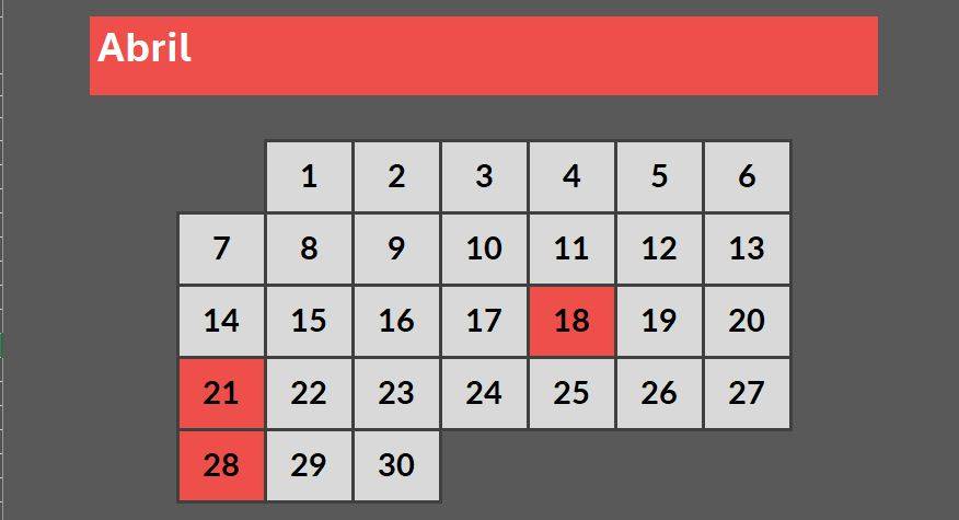 Esta instalación permanecerá cerrada al público los días: 18, 21 y 28 de Abril.